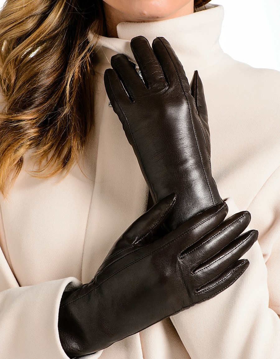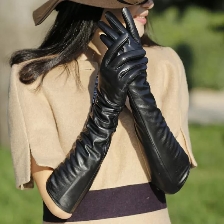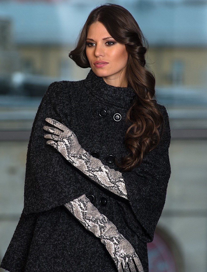 The size of women's gloves also has some differences. So, elongated models are appropriate for evening receptions in combination with a dress with 3/4 sleeves. Also, such gloves will look luxurious in images where outerwear has a shortened sleeve.