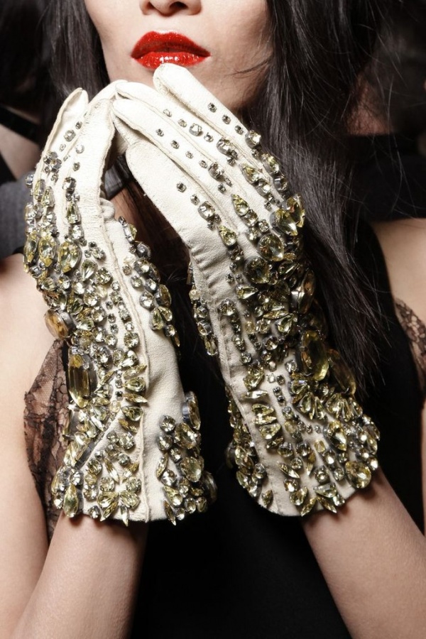 It is quite simple to notice the owner of Chanel gloves in the crowd - most often the models have a large tanned logo on the front and framing around the edge in the form of double stitching, as well as decorations with sequins or elegant bows.
