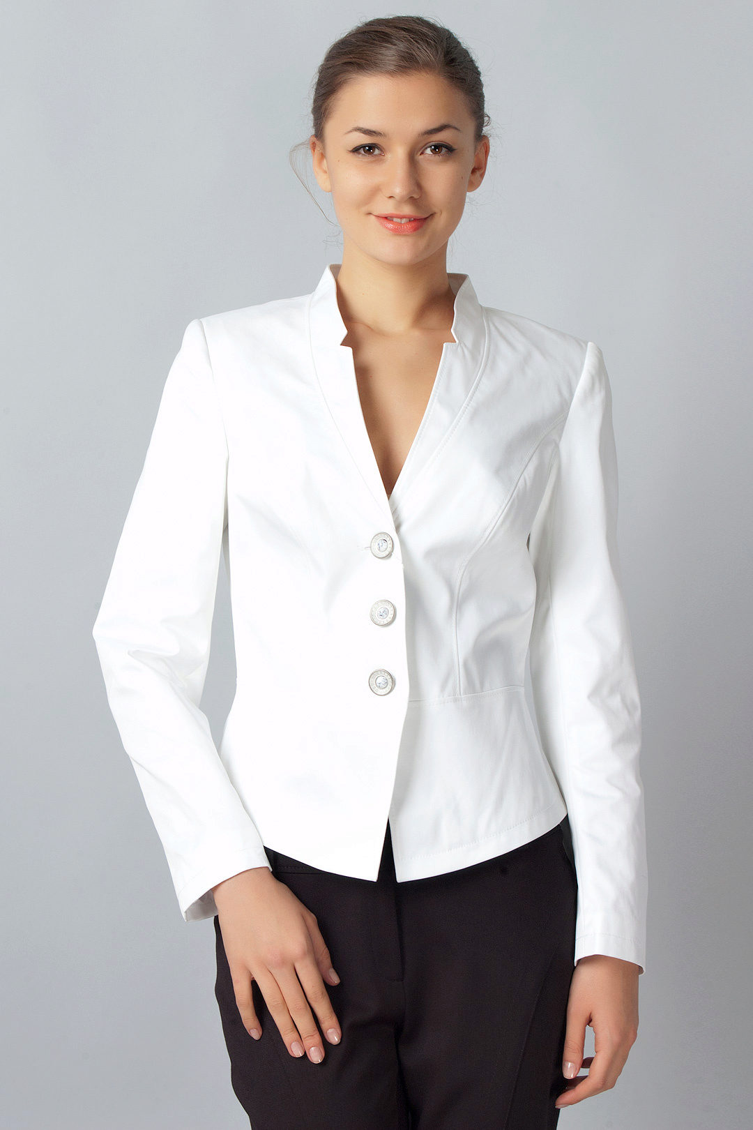 White jackets are most often made from cotton. Satin white jackets are also feminine, which are most suitable for social events.