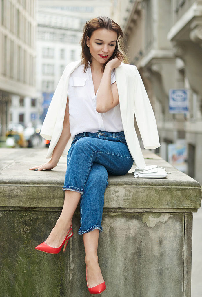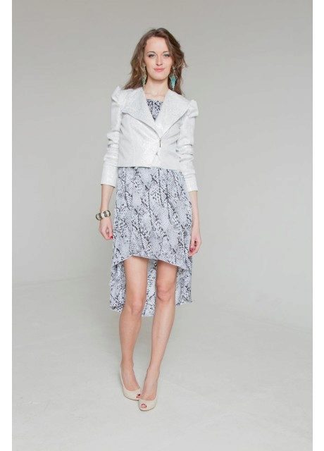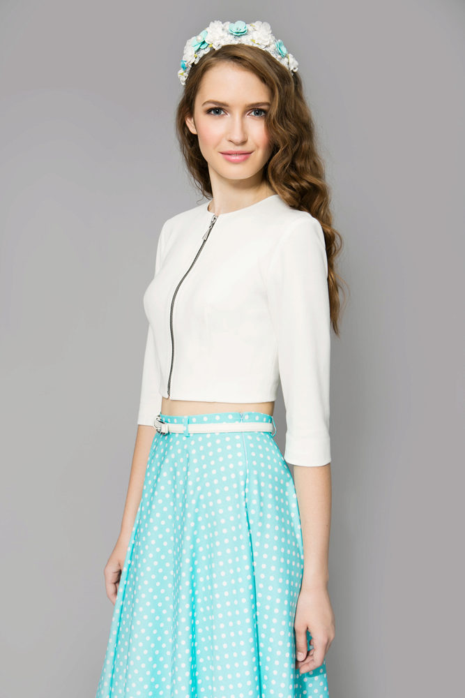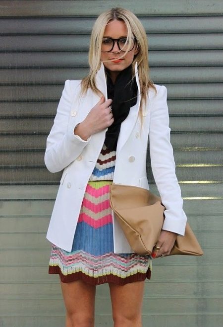 A short white jacket is best for the summer season. Due to its length, it will not overload your image and will focus on what is under it. For example, a light lace dress or a light sundress.