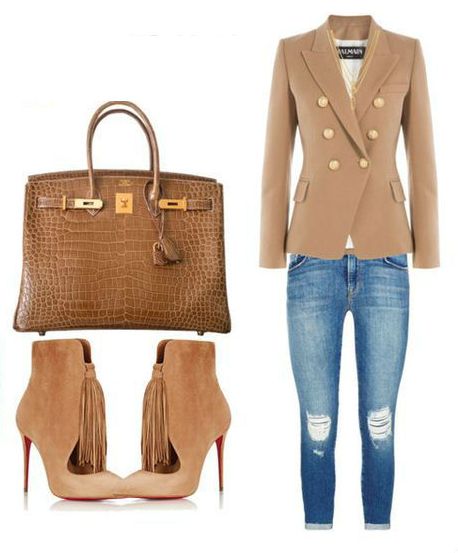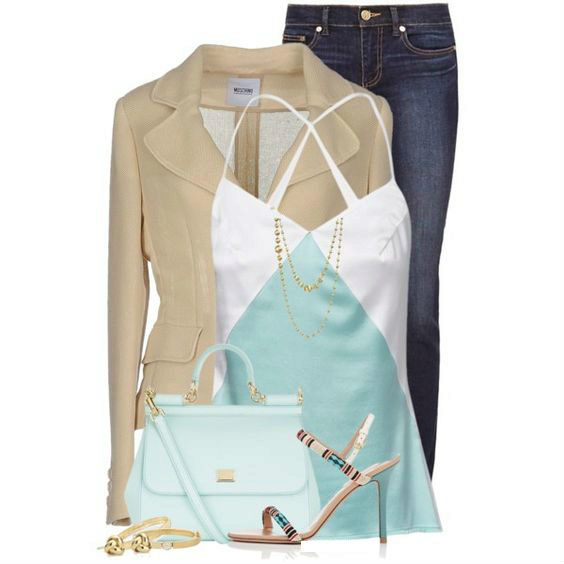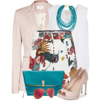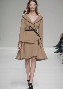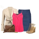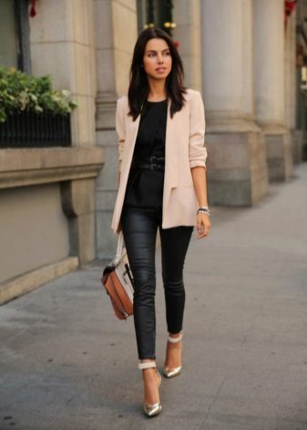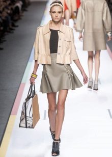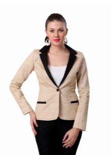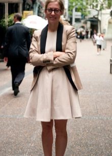 The gentle beige jacket will make an excellent company with a full skirt or pencil skirt. If you choose the first option, do not forget to emphasize the waist with a belt.