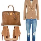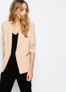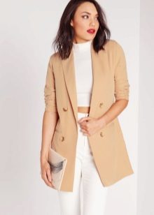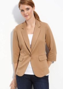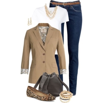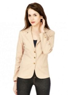 Wear a beige jacket with jeans and a T-shirt, and get a beautiful look for every day. Replace the shirt with a shirt - and the business image for the office is ready. As in the case of shorts, shoes can be picked up in a sporty style, on a flat sole or on a heel.