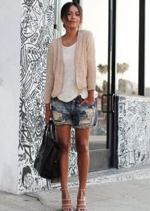 Go for a beige blazer and short shorts and simple shirts. This is the perfect look for the summer season.. If shorts with a top look like a beach option, then thanks to the jacket you get a beautiful image in the style of "urban chic". In the afternoon, complete the look with sneakers or sandals, and in the evening with sandals or high-heeled pumps.