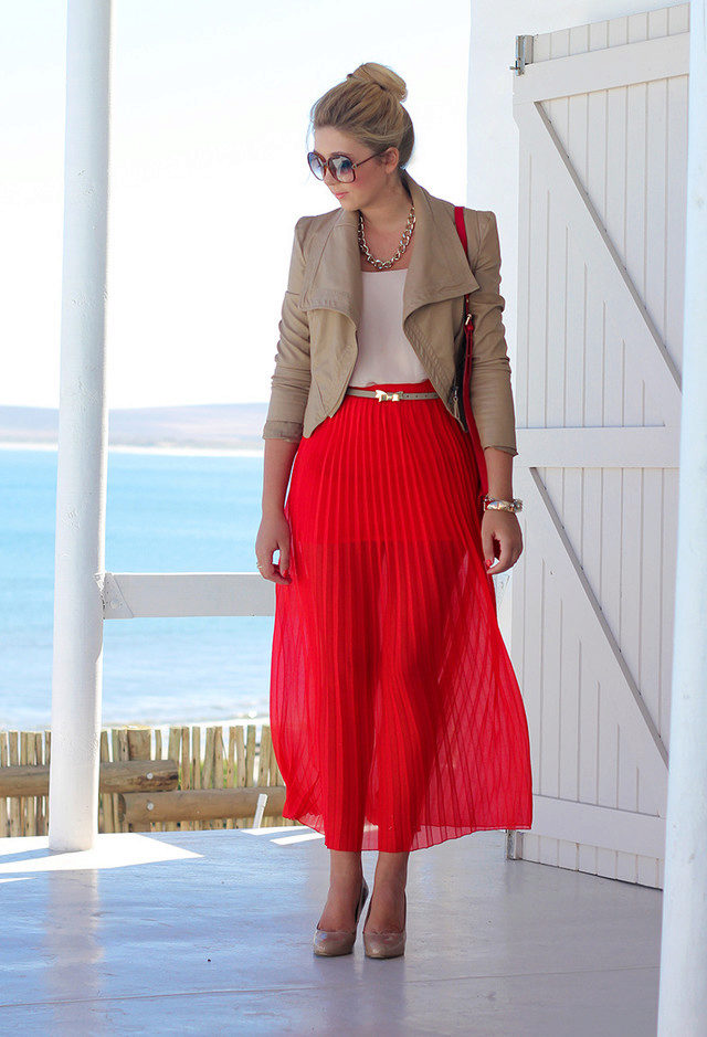 The beige jacket looks very gentle and feminine, so the image with any dress of a contrasting color immediately suggests itself.. This is the perfect solution for every day. You can also choose a dress in pastel colors, if you want to create a romantic look for a date.