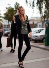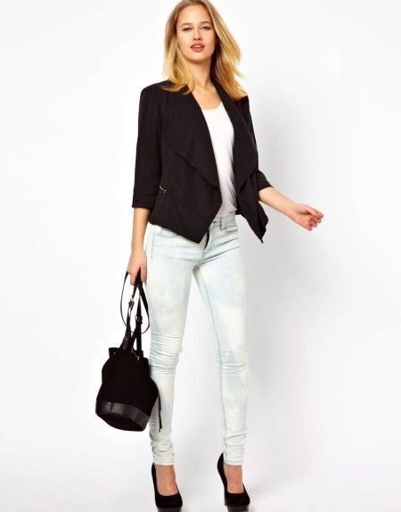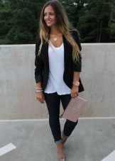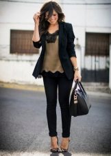 In everyday life, a black jacket can be combined with dresses, shirts, tunics and other comfortable models.