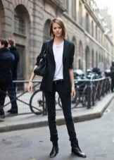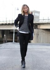 In the cool time of year to a black jacket, you can wear boots - elegant, with a narrow bootleg or coarse shoes in military or cowboy style.