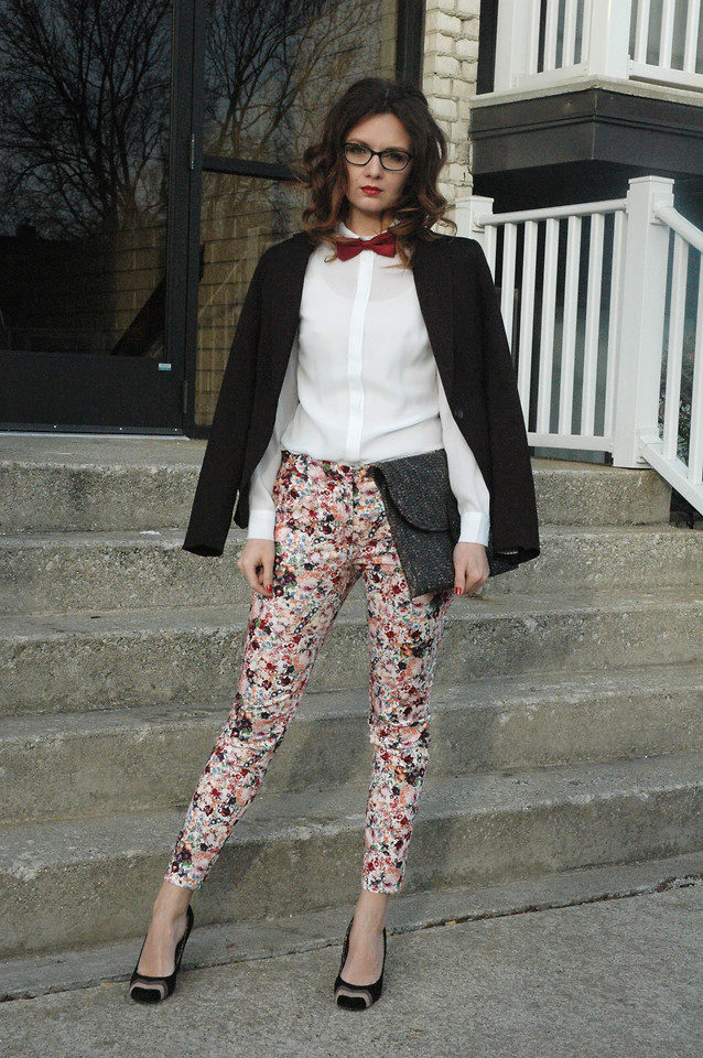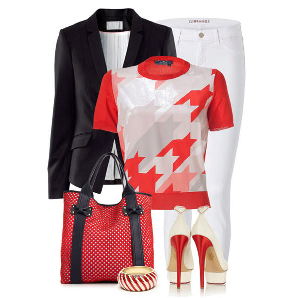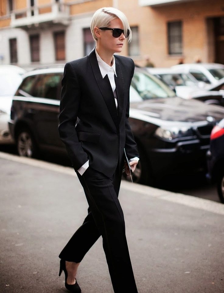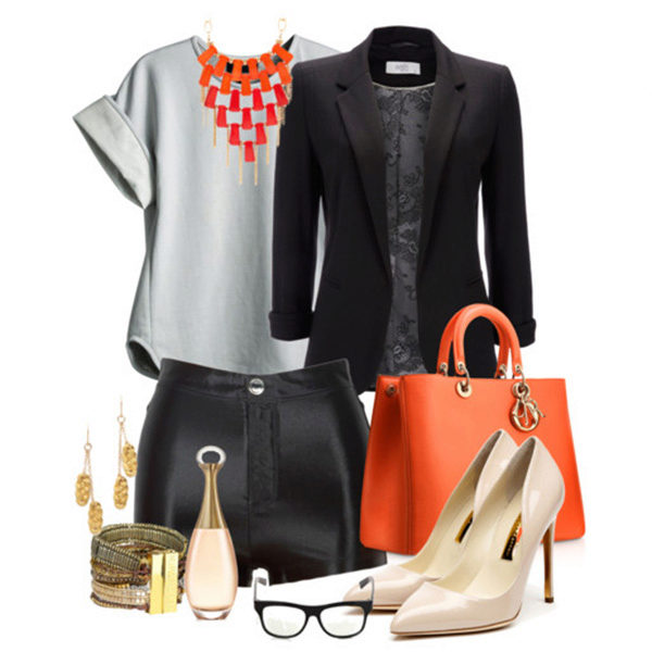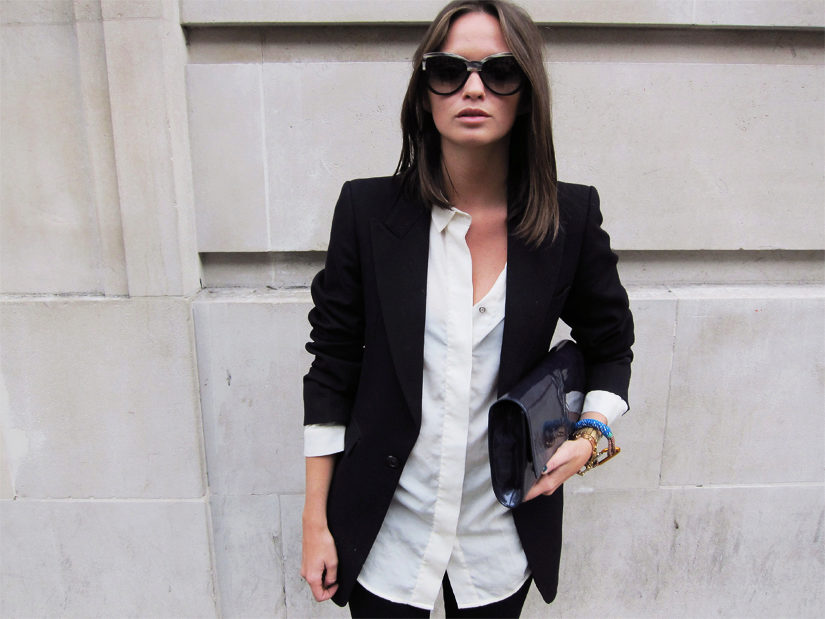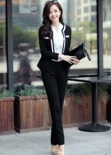 If the combination of “black jacket + shirt” is associated with the business style of clothes, then the combination of a black jacket and blouse would be appropriate even at a ceremonial event.