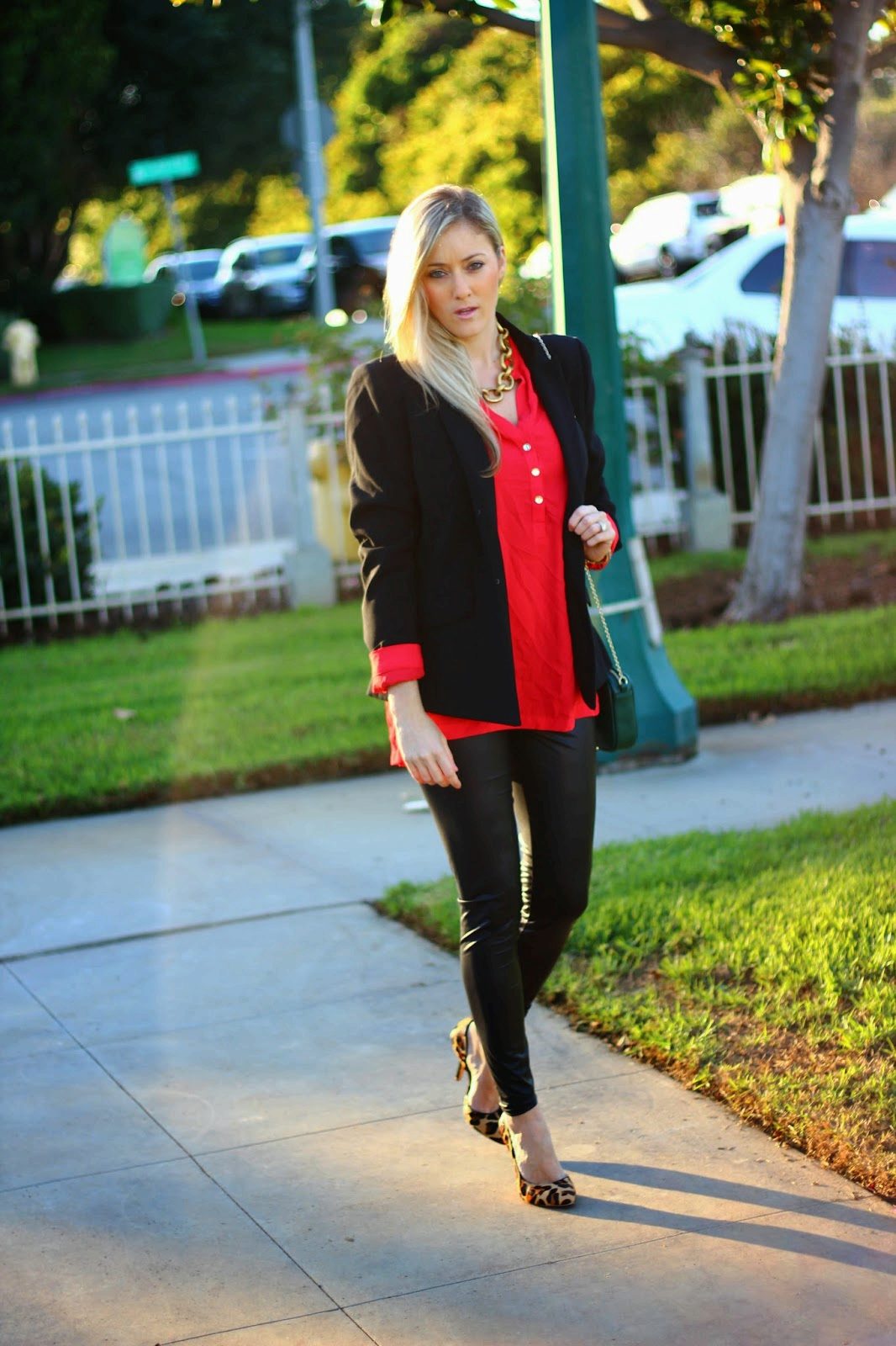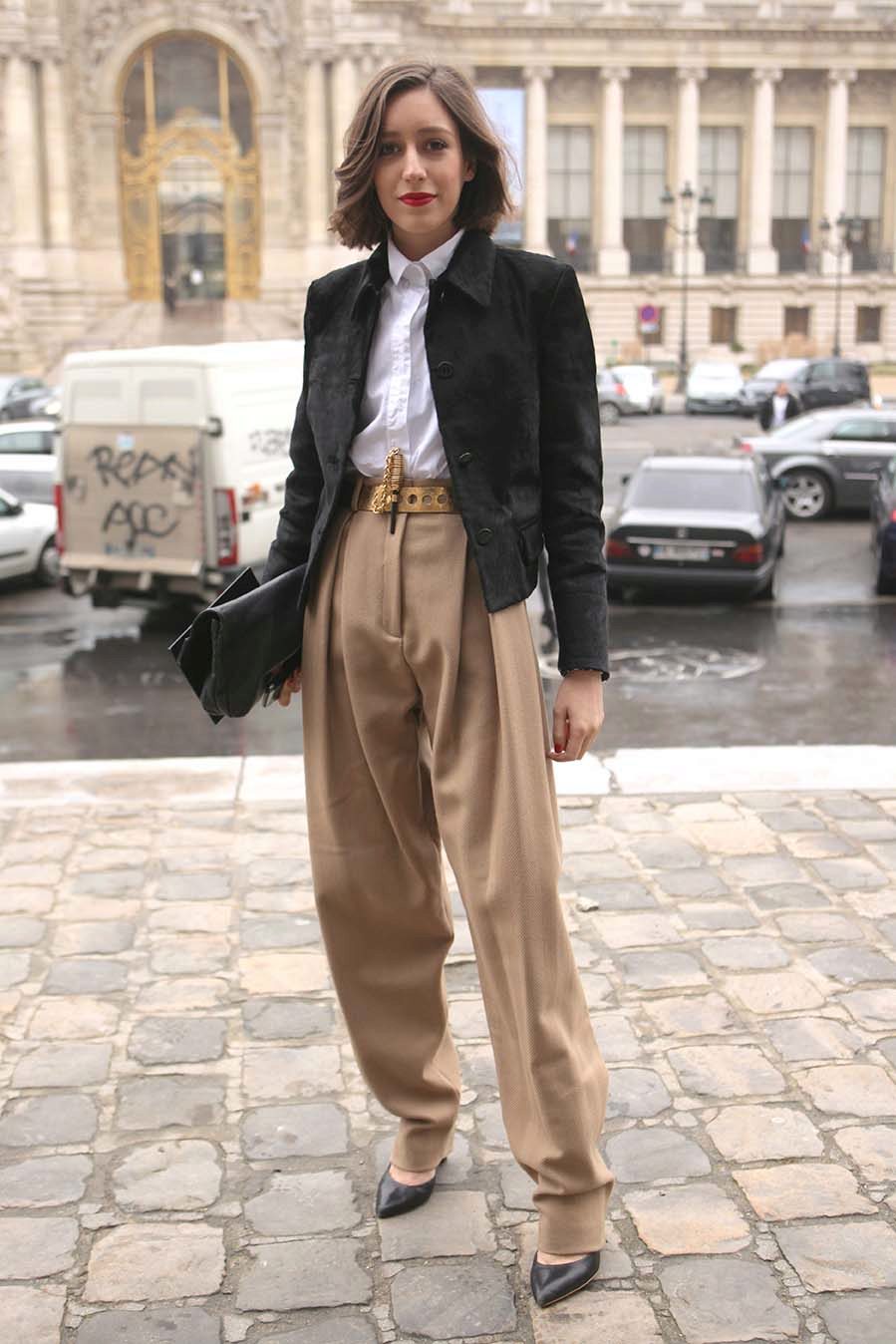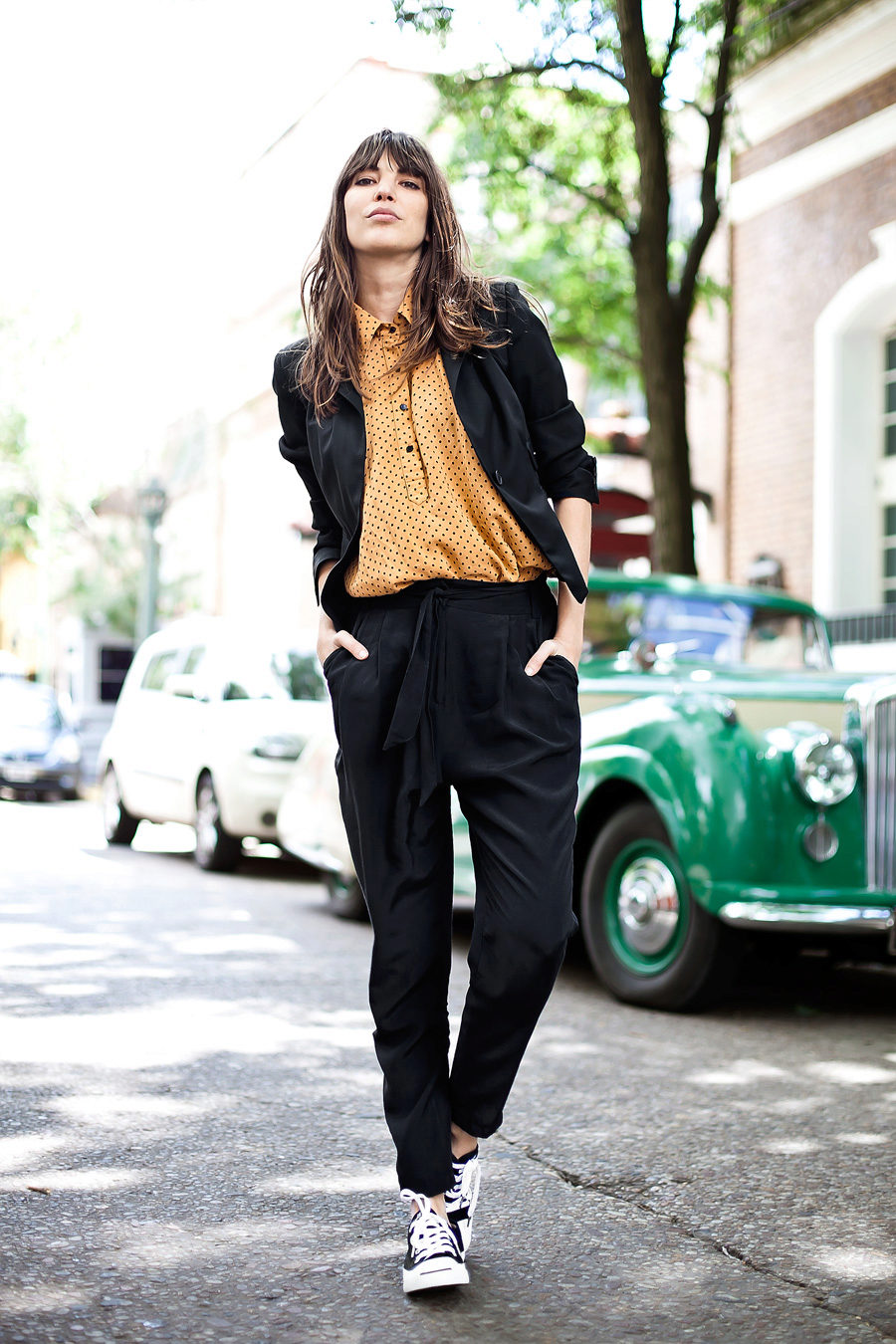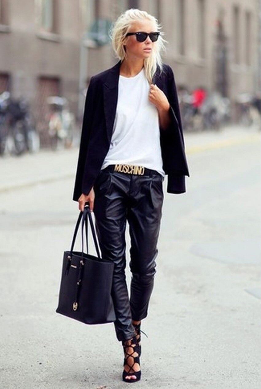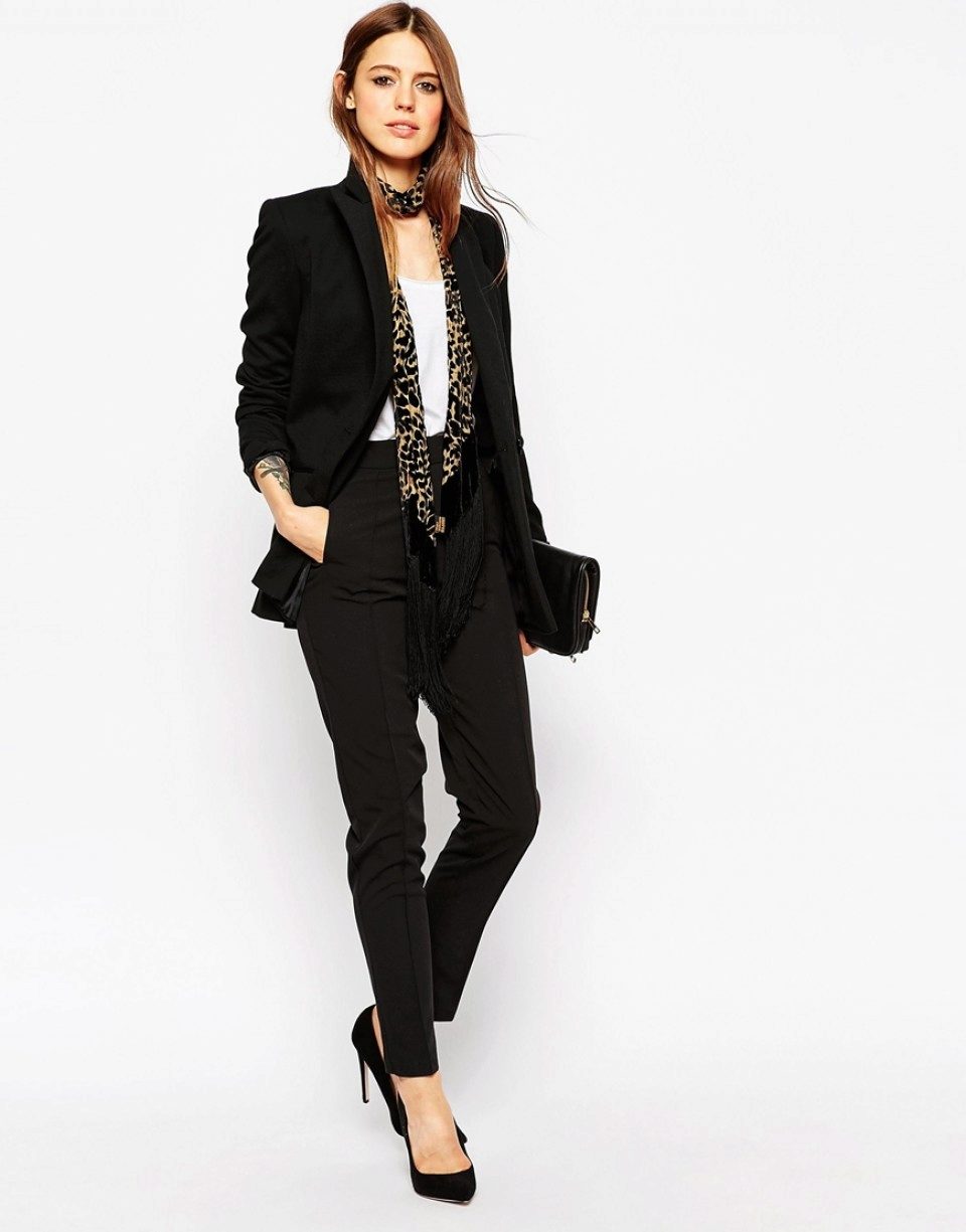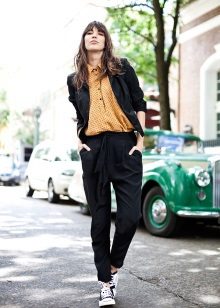 The image will be more refined and sophisticated, if you choose a blouse from thin, airy material, for example, chiffon. Loose blouses create a flying, romantic silhouette that harmonizes perfectly with the restraint of a black jacket.