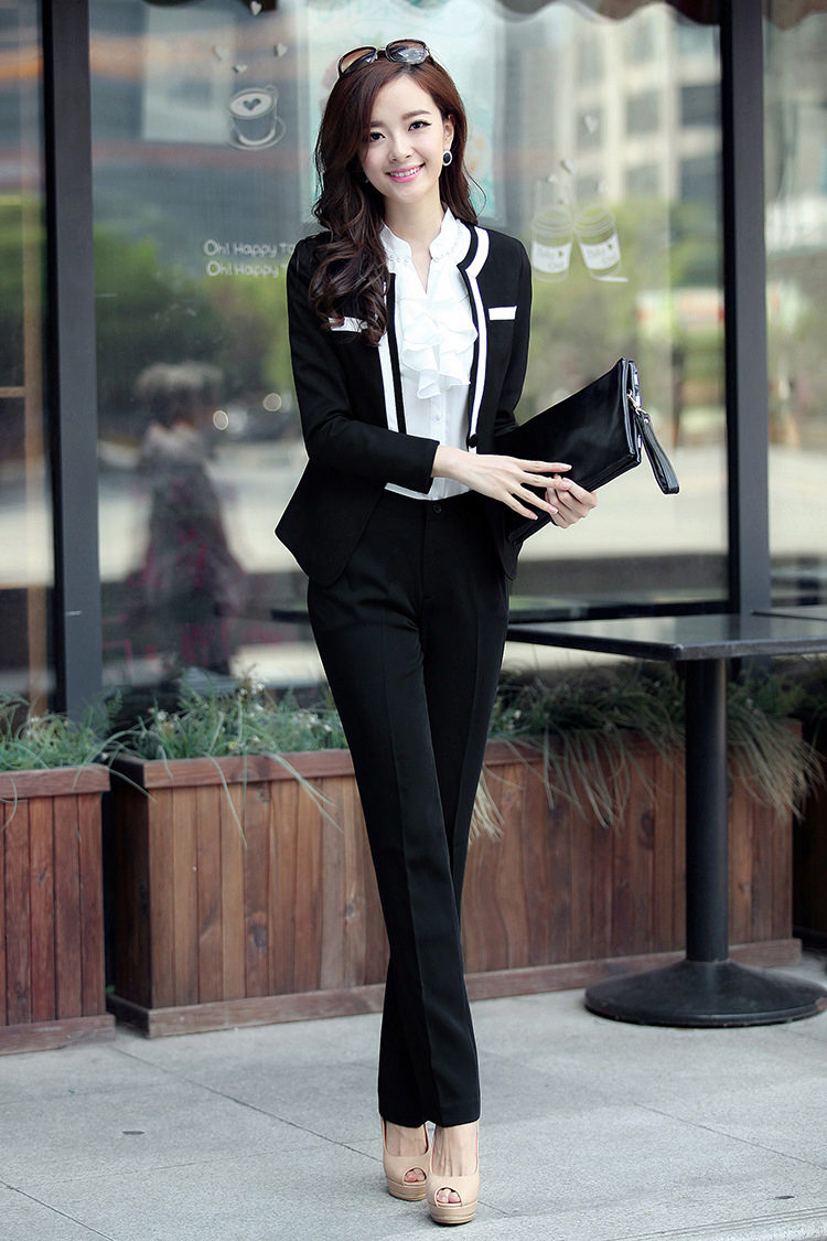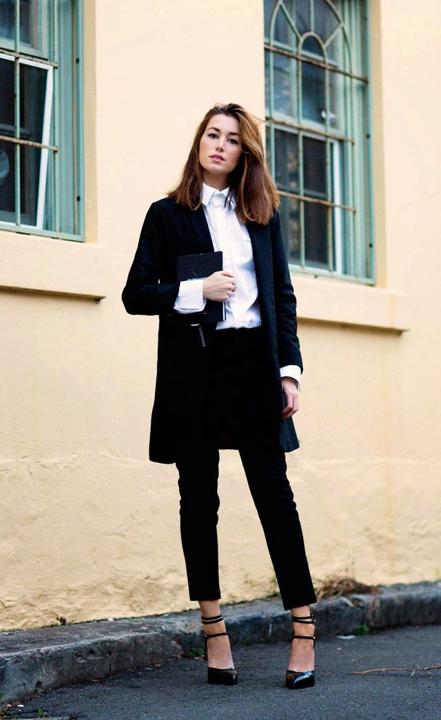 A black jacket with a shirt is another standard business look. Most often, girls opt for a white shirt.