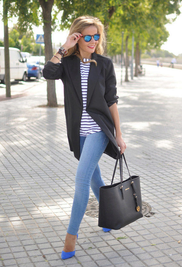 In everyday life, cropped black blazers can be worn with your favorite jeans and comfortable shoes.