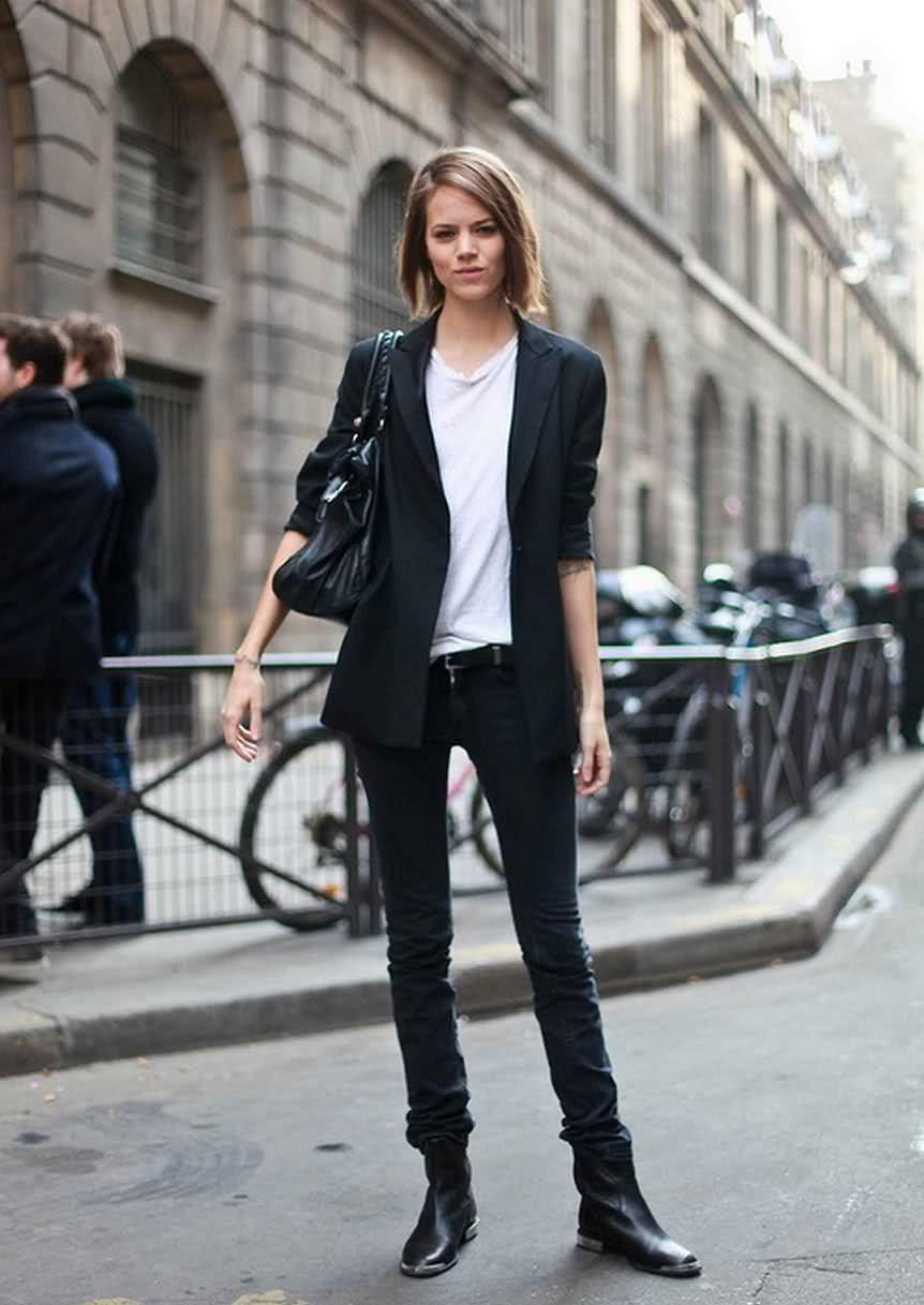 However, in the case of a black jacket there are no strict recommendations on the selection of shoes. There are only two requirements: it should be comfortable and fit the situation.