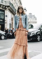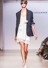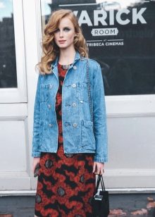 The fitted classic denim jacket will suit a strict dress or light sundress. This is a universal option for women of any age.