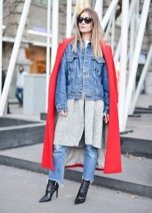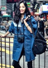 Long denim jacket is very popular this summer. In combination with a mini dress it will be advantageous to look at an evening walk or a get-together.