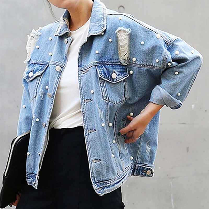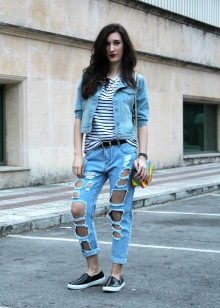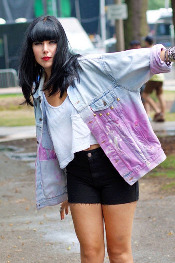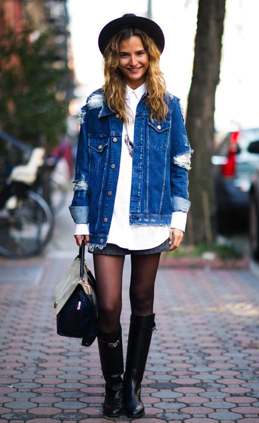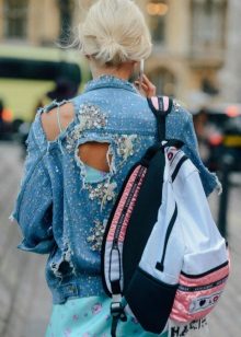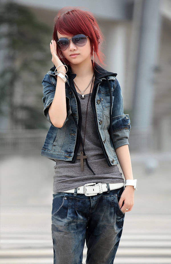 For girls who prefer this style, jeans jackets with holes, studs and rivets are suitable.