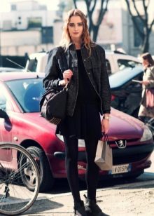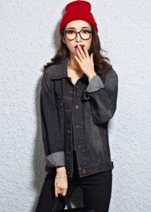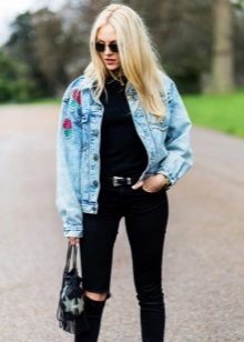 A black denim jacket will never go out of style. The best option for total black fans. It is well combined with bright poisonous flowers, and also dirty shades of dark colors and white. Practical to wear, suitable for grunge style.