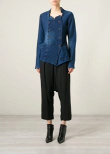 Denim double-breasted jackets are decorated with beautiful buttons. On this model, usually beautiful lines and collars.