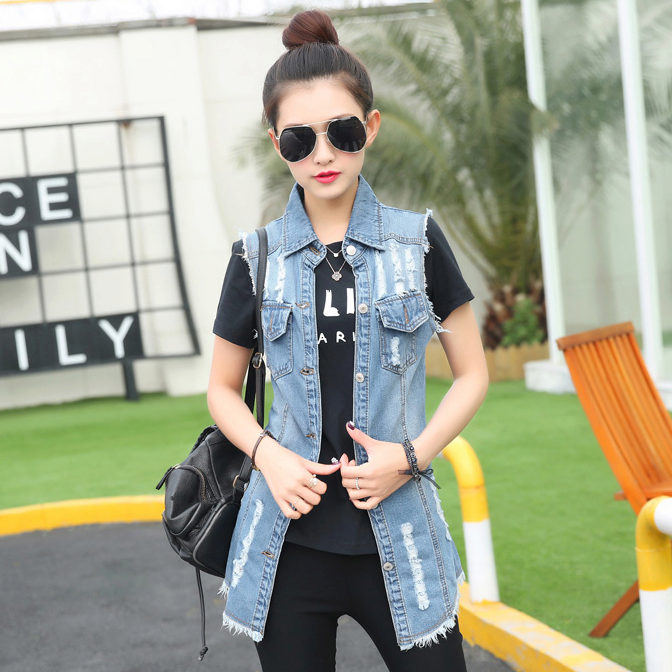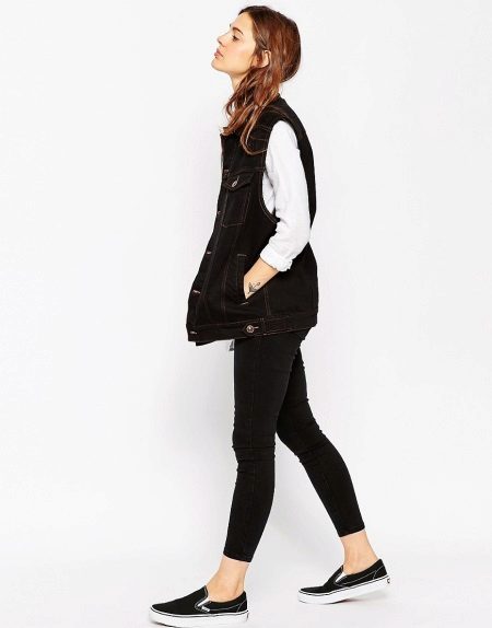 The variety of sleeveless denim jackets fascinates. This is a stylish solution that suits everyone without exception.