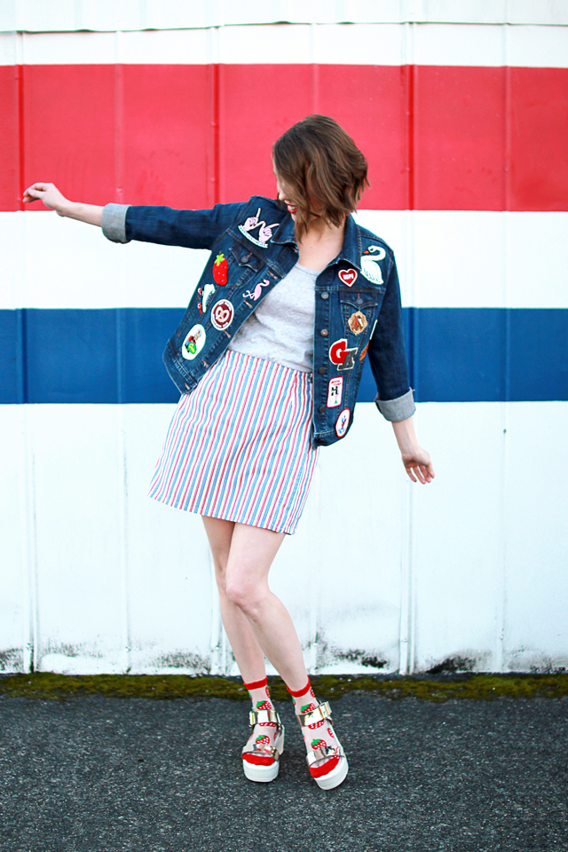 Advice: take a marsh-colored denim jacket, sew the stripes on the right places and complete them with small bright icons.