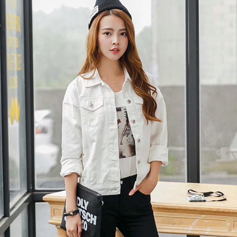 Classic calm white color looks great on a denim jacket.A simple color scheme plus a versatile fashion item is a great tandem.