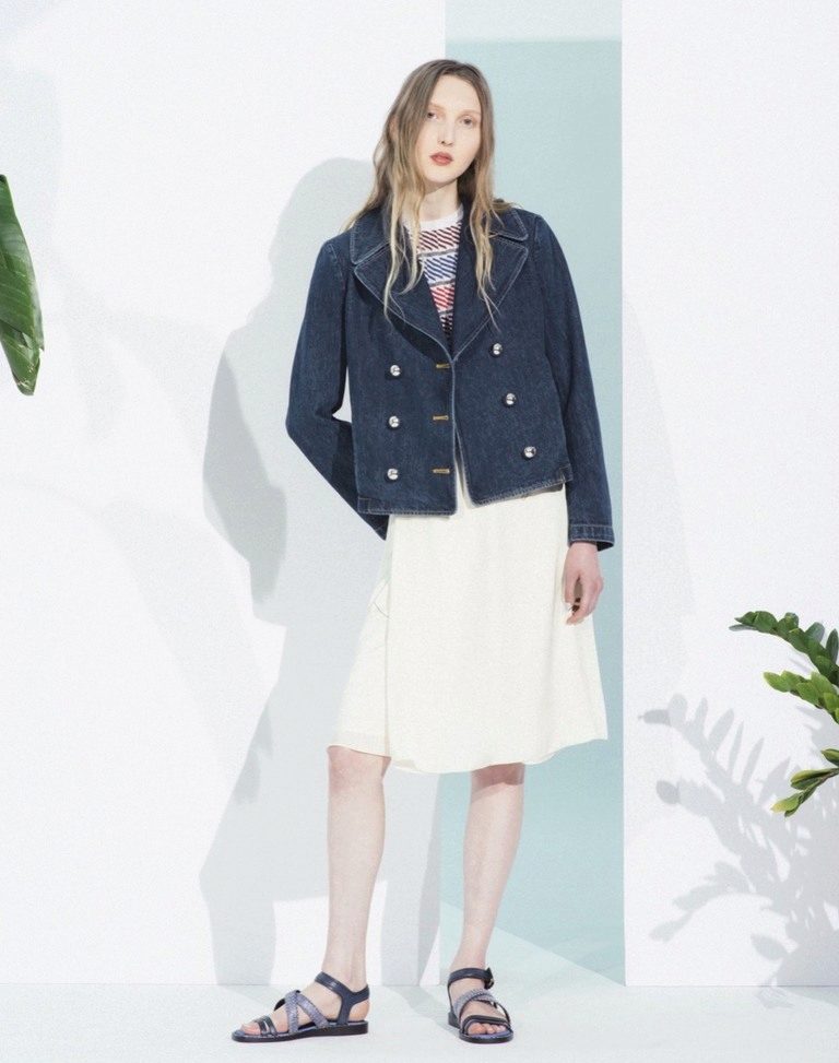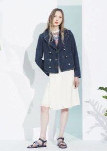 The club jacket goes well with romantic outfits: loose tunics and shirts, elegant skirts, elegant dresses.