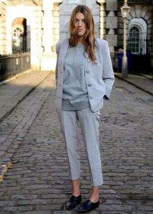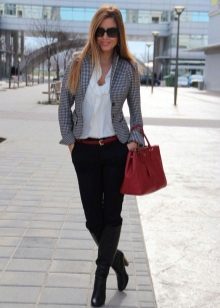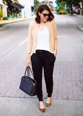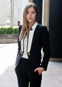Trousers. A short jacket will perfectly complement the set of tight-fitting trousers and blouse or top. If things are designed in one color, then you can get a very stylish, strict outfit, perfectly suited for an office dress code. The combination of a shortened jacket and trousers made of light, flowing fabric looks very impressive.