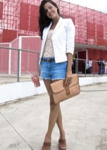 Shorts. Short jackets can be safely worn with a summer set consisting of breeches, capri pants or shorts and thin shirts. It turns out a great option for everyday wear.