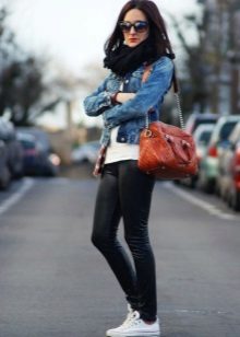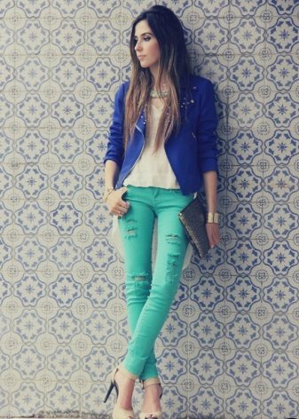 Jeans. The classic combination: jeans + jacket from denim. It is good, if they will be sustained in uniform color scale. Jeans can be any cut - from skinny to flared. Under the denim jacket you can wear a top or tank top. A beautiful belt, a bright accessory or a handbag will be a striking addition to the youth image.