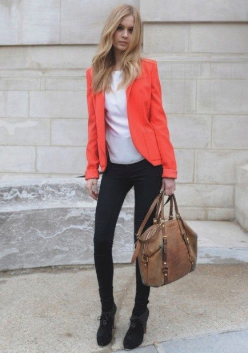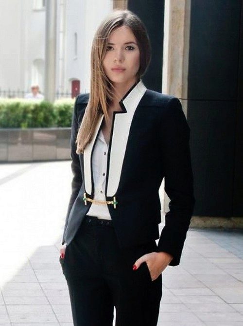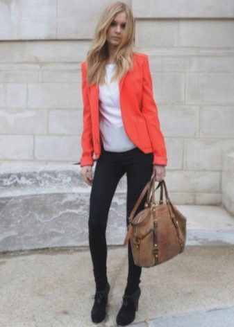 To create a strict, official or solemn image perfect jackets classic white, black or gray. The casual image allows the use of jackets of any color range: ranging from delicate, pastel colors, to bright and rich colors.