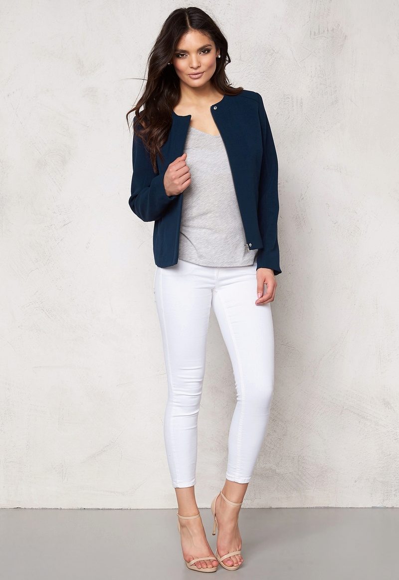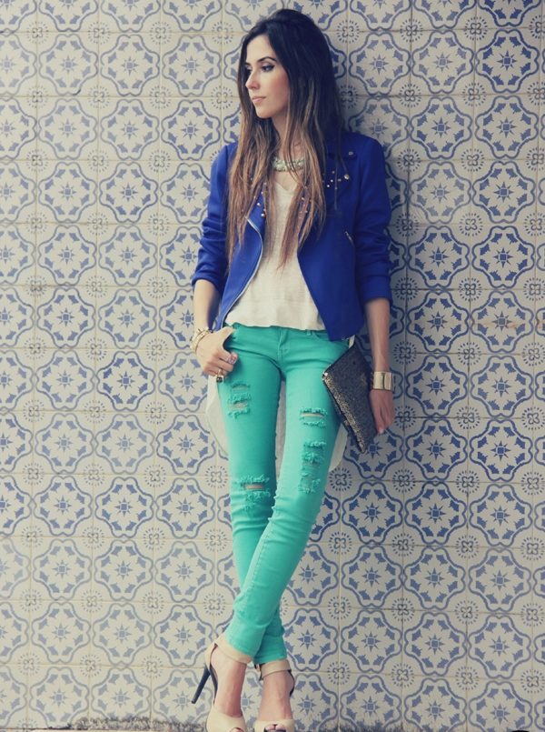 This color is more suitable for creating a casual or elegant look. A blue jacket combines perfectly with jeans or a denim skirt. It can be the perfect complement for clothes in red. The fitted jacket of an inky color ideally sets off the gentle, pastel tones of summer clothes.