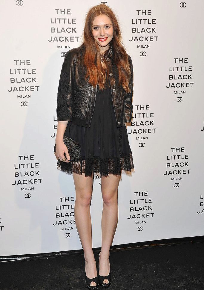 A stylish combination: a little black dress + short fitted jacket, made of black leather.