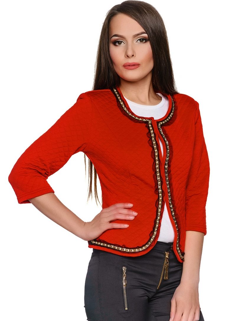 Most often sewn from dense fabric, thereby keeping the shape. It can be denim, leather, tweed, suede and other natural and artificial materials. Demi-season models of short jackets can be made of thin wool on the lining. For hot summer, you can use lighter, "breathing" fabrics - flax and cotton.