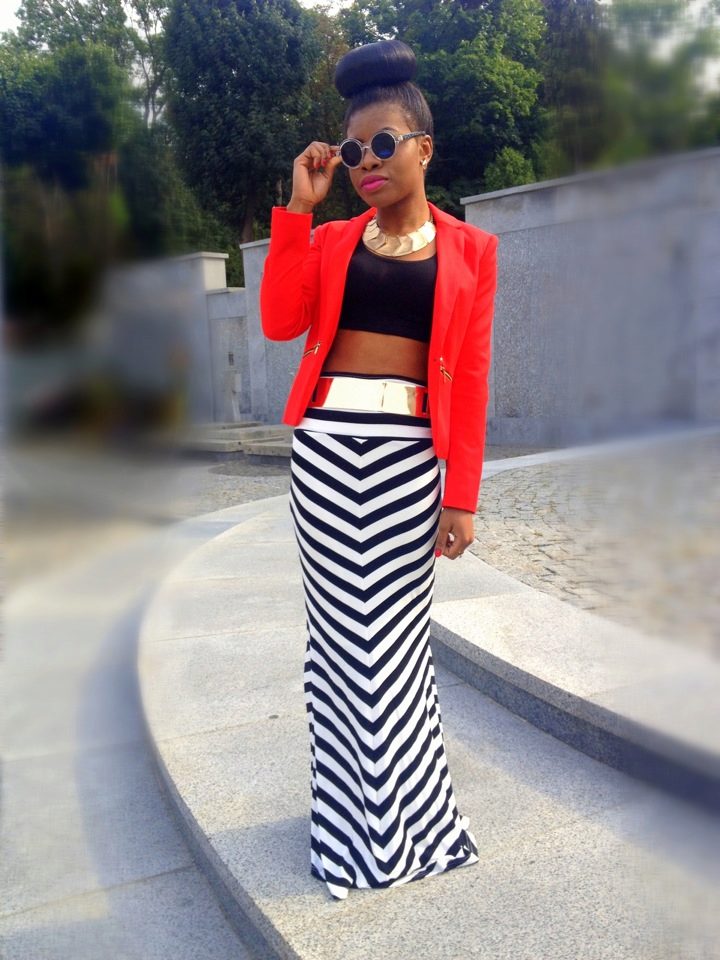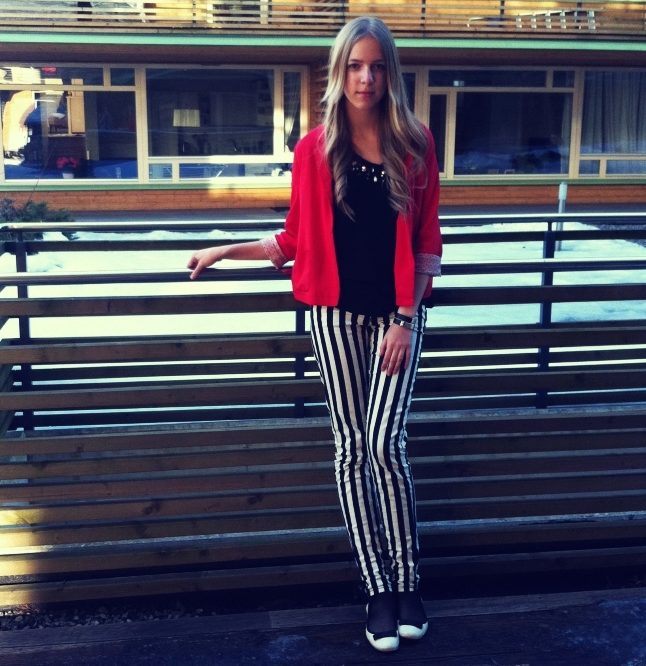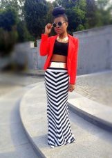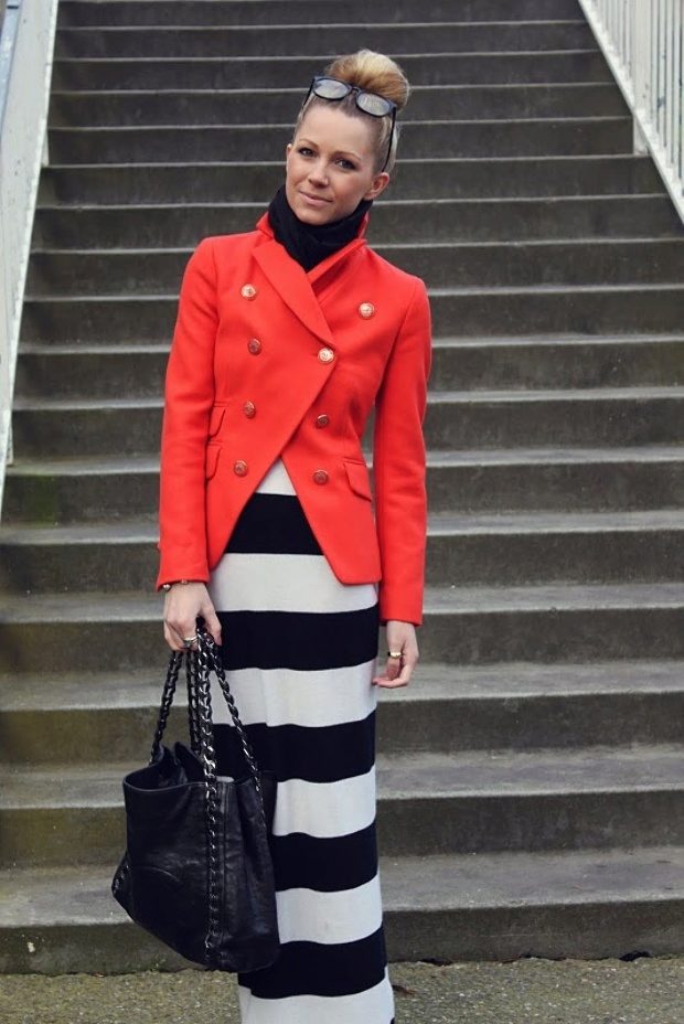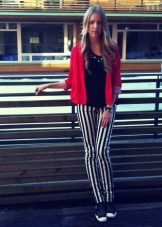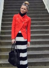 Black and white stripe and a red jacket can be used in any variations. The band may be a dominant position in combination, or it may be a small detail.