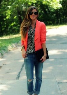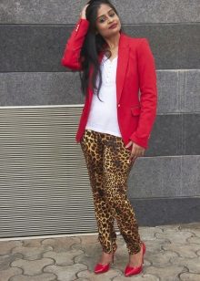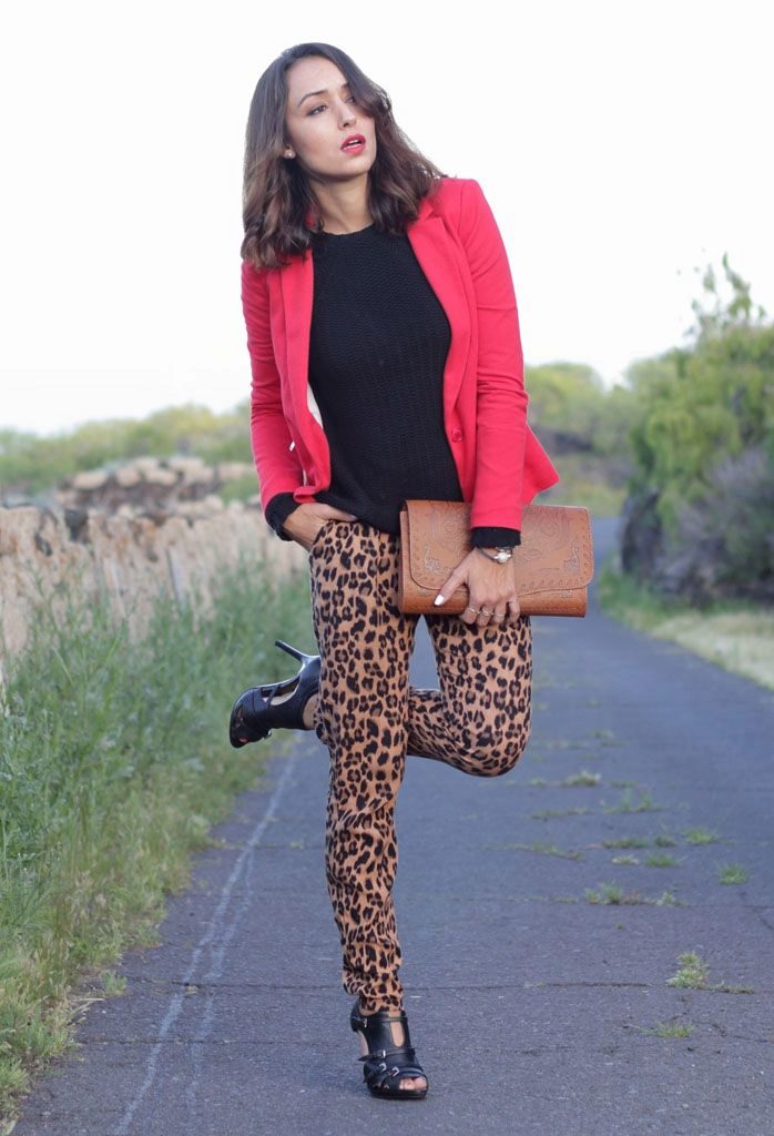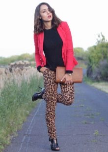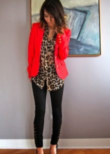 Combine red jackets with prints. A popular combination that has come from the distant 90s: leopard and red. The perfect combination: red, black and leopard. Do not forget that this ensemble is not suitable for office or business meetings.