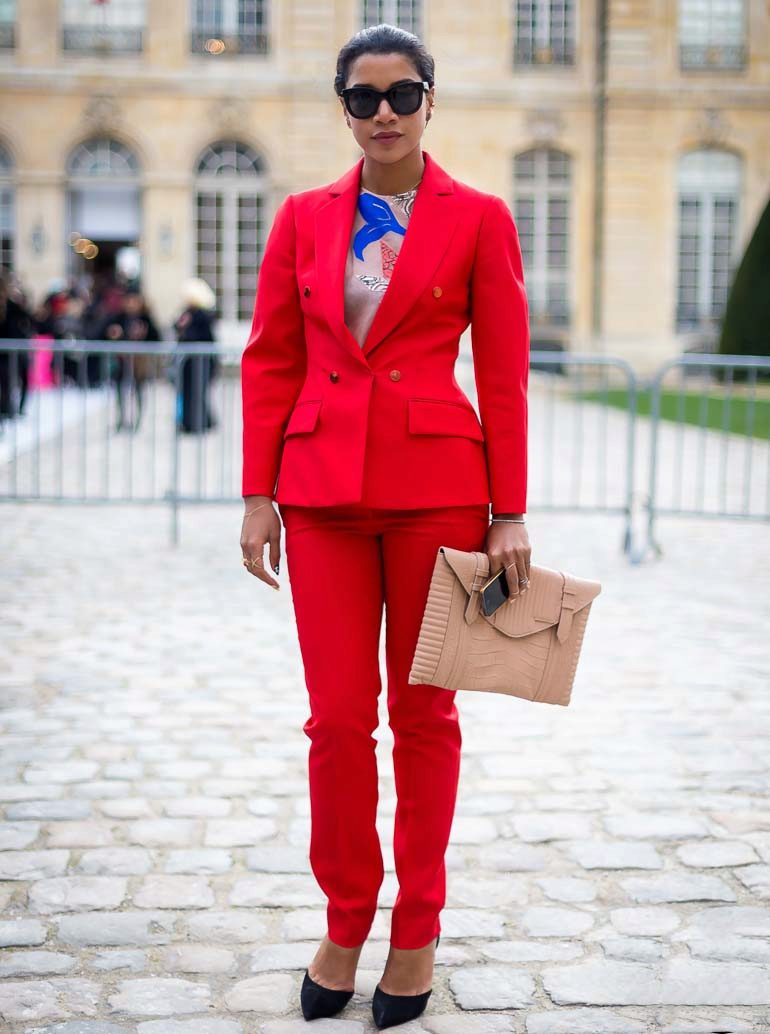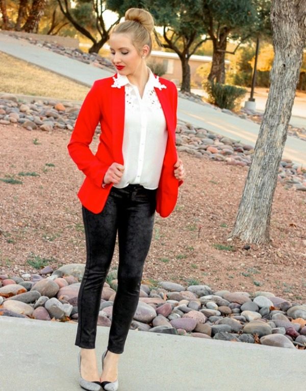 The fitted red jacket is always attractive and dramatic. Saturated color and fitting silhouette perfectly emphasize the dignity of the figure. A red fitted blazer is appropriate for the office. The main thing is to choose the image.