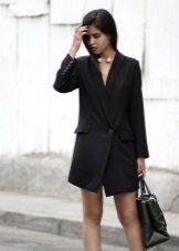 - A dress jacket is not always a business version of clothing, so if you choose an option for an office, carefully study your favorite model. As under a dress-jacket it is not necessary to put on tops or shirts, the neckline should not be too deep. To work, it is better to choose models with sleeves, at least not large, besides, the dress should be long enough.