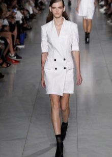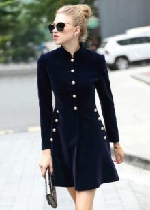 As you might guess from the name of this item of clothing, a jacket dress is a cross between a short dress and a long jacket. It is characterized by a fitted or semi-inclined silhouette and a deep V-neck. Dress jacket can be with or without sleeves, the presence of lapels and pockets is also not mandatory.