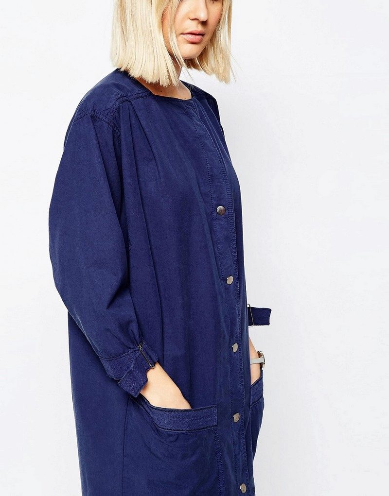 - The original model from ASOS: baggy silhouette, cutout with a smell, sleeve ¾, zipper buttons and large patch pockets.