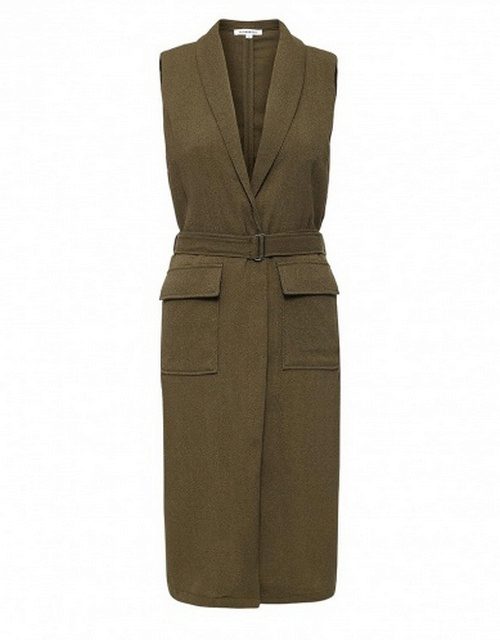 - Military style from GLAMOROUS: khaki sleeveless model with patch pockets, without fasteners, but with a textile belt.