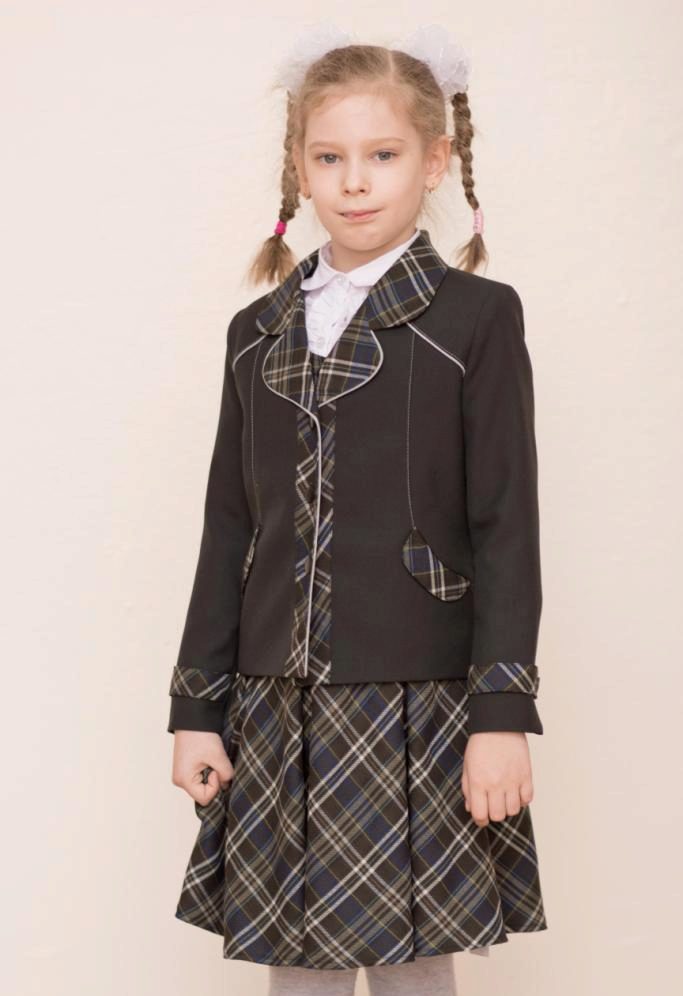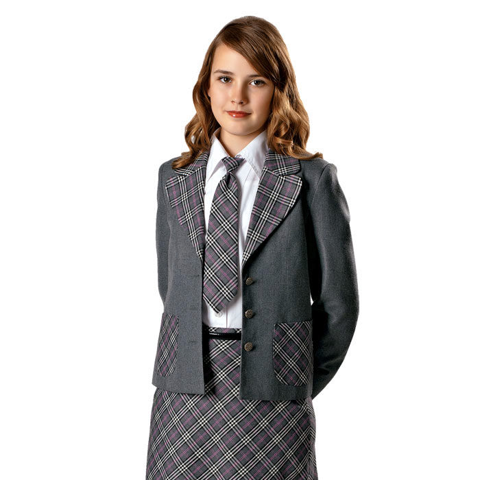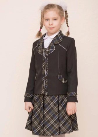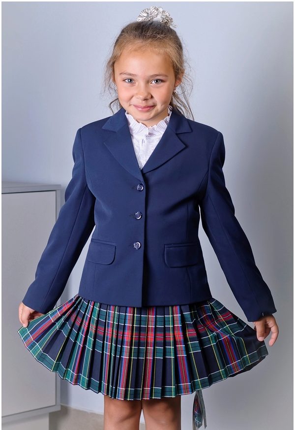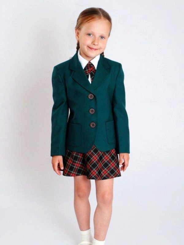 Check jackets are a very good solution. The presence of the pattern enlivens the school uniform, makes it more interesting.Looks great model in a traditional tartan, which combines several bright colors.