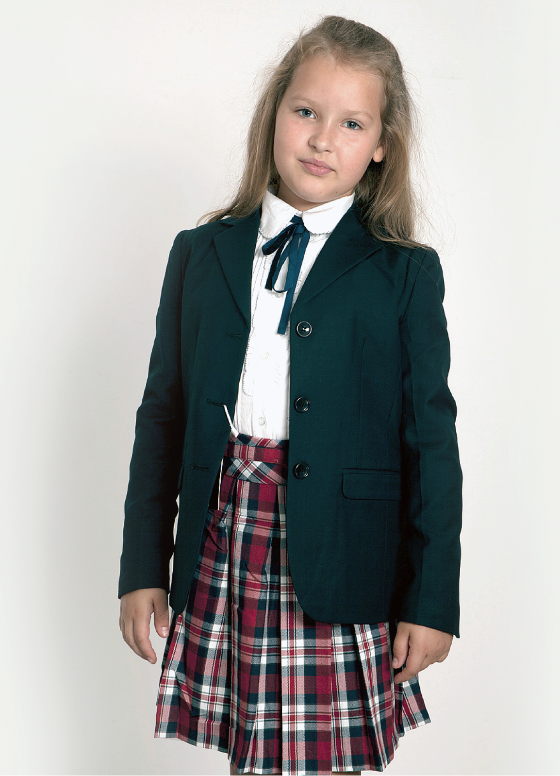 Green jackets look interesting, but this color does not suit all girls. Manufacturers of school uniforms usually choose dark shades of green for children's jackets, which look dark and unprofitable shade the complexion.
