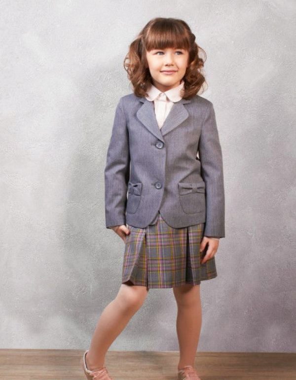 Gray jackets are a more suitable option for school. Gray color does not cause irritation, on the contrary, it has a calming effect. The advantage of gray jackets is that they can be worn with shirts of various colors - white, blue, blue, pink, lilac, yellow, etc.