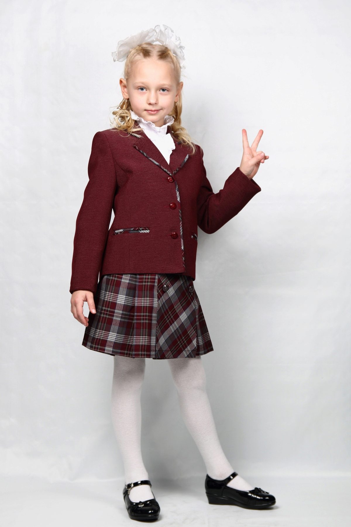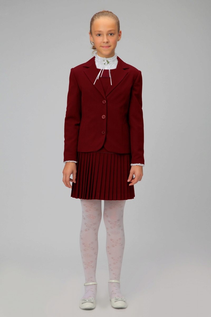Burgundy jackets are quite popular solution for school uniforms. Children usually like this color because it is bright and expressive. However, it will be much more difficult to choose a shirt for a burgundy jacket.