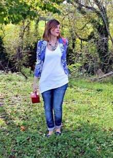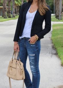 - Color plain shirt under the jacket of the correct shade - and the image for the institute or office is ready. A white shirt or T-shirt under a blue jacket - the image became restrained and strict.