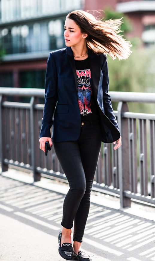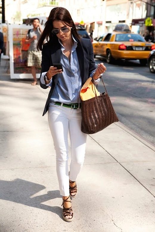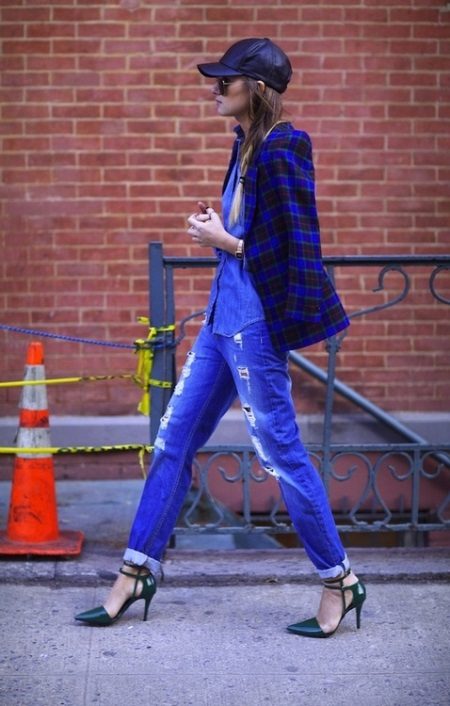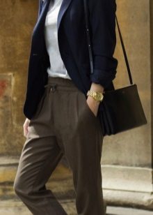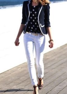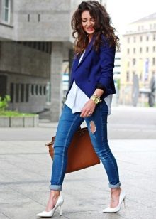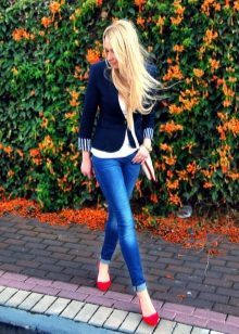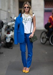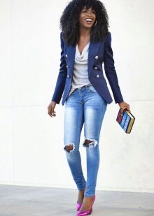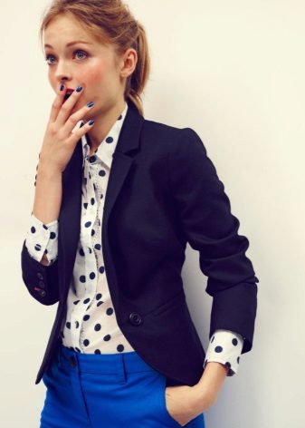 To create an office style, it is enough to combine a blue jacket with trousers of a classic cut. To create a free street style, young girls love to combine blue jackets with jeans of the same shade. Light beige or white trousers will make a great ensemble of a dark blue or bright blue jacket.