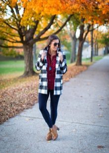 A large cell will visually enlarge the shape. If your choice nevertheless fell on a jacket in a cage - then let it be dominated in the image only. Other items of clothing should choose monochrome and preferably in tone with one of the colors of the cell of the jacket.