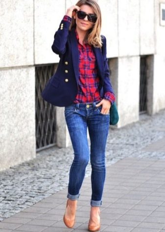 If you decide to purchase, for example, blue jacket in a cage - This is a bold, but interesting combination. The main thing to remember is that a jacket in a medium or small cell is more versatile.