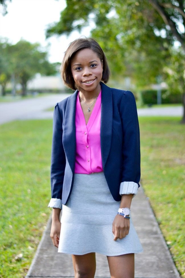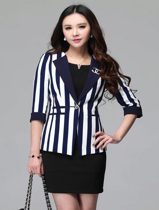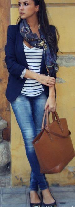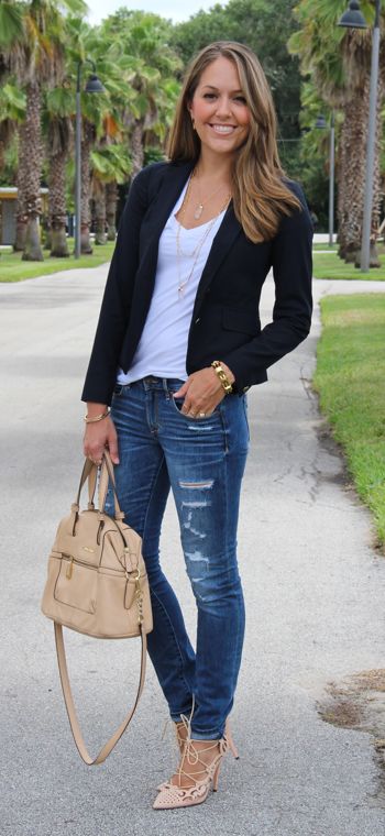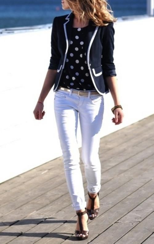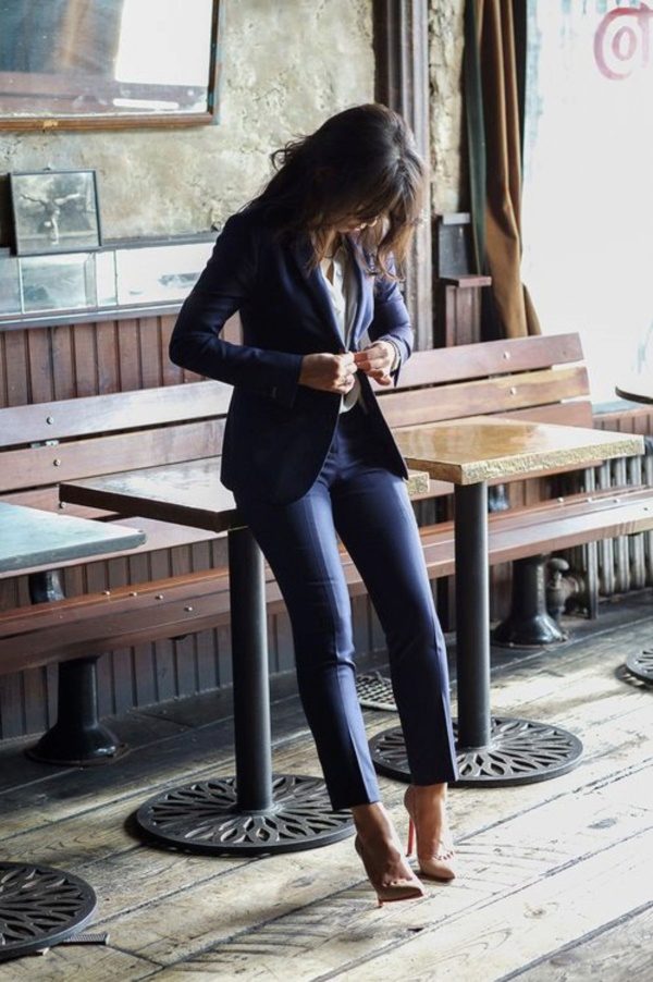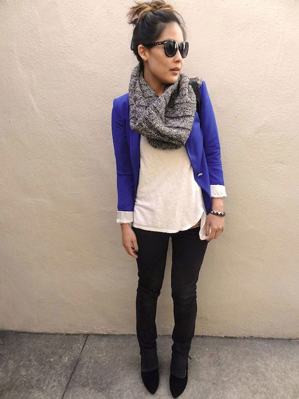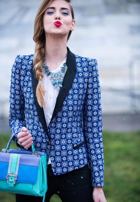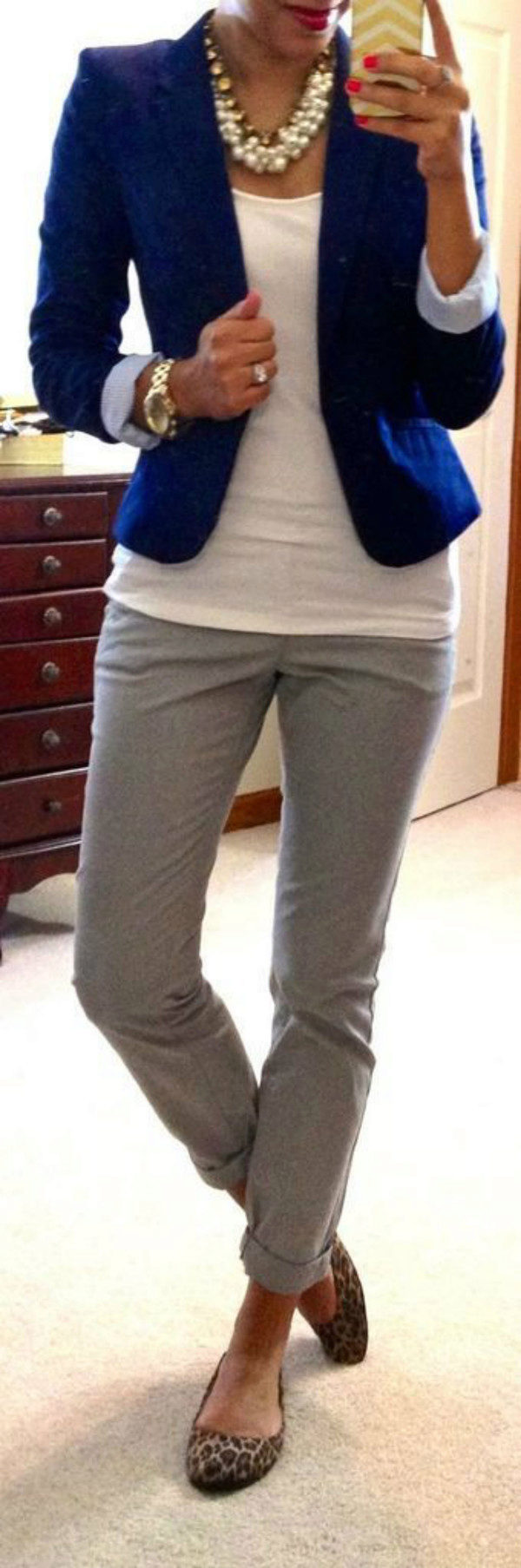 - A bright blue blazer with a romantic, light blouse is a perfect way to date or meet friends.