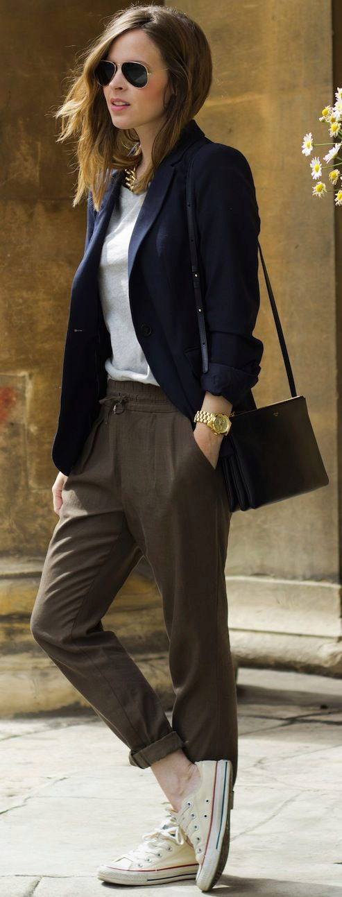 Shorts or breeches are the perfect complement to a blue jacket for meeting with friends or walking in the evening along the waterfront. Moreover, to give the image a greater ease, it is not necessary to combine shorts with the tone of a jacket. Experiment!