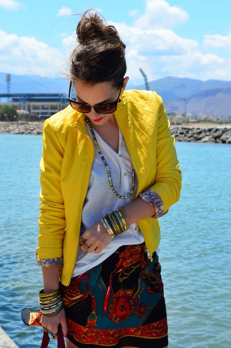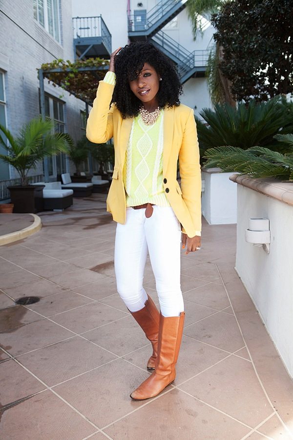 When choosing a yellow jacket, in no case should we forget that you are putting on very bright clothes. Therefore, you should be especially careful about drawing bows with a jacket of this color.