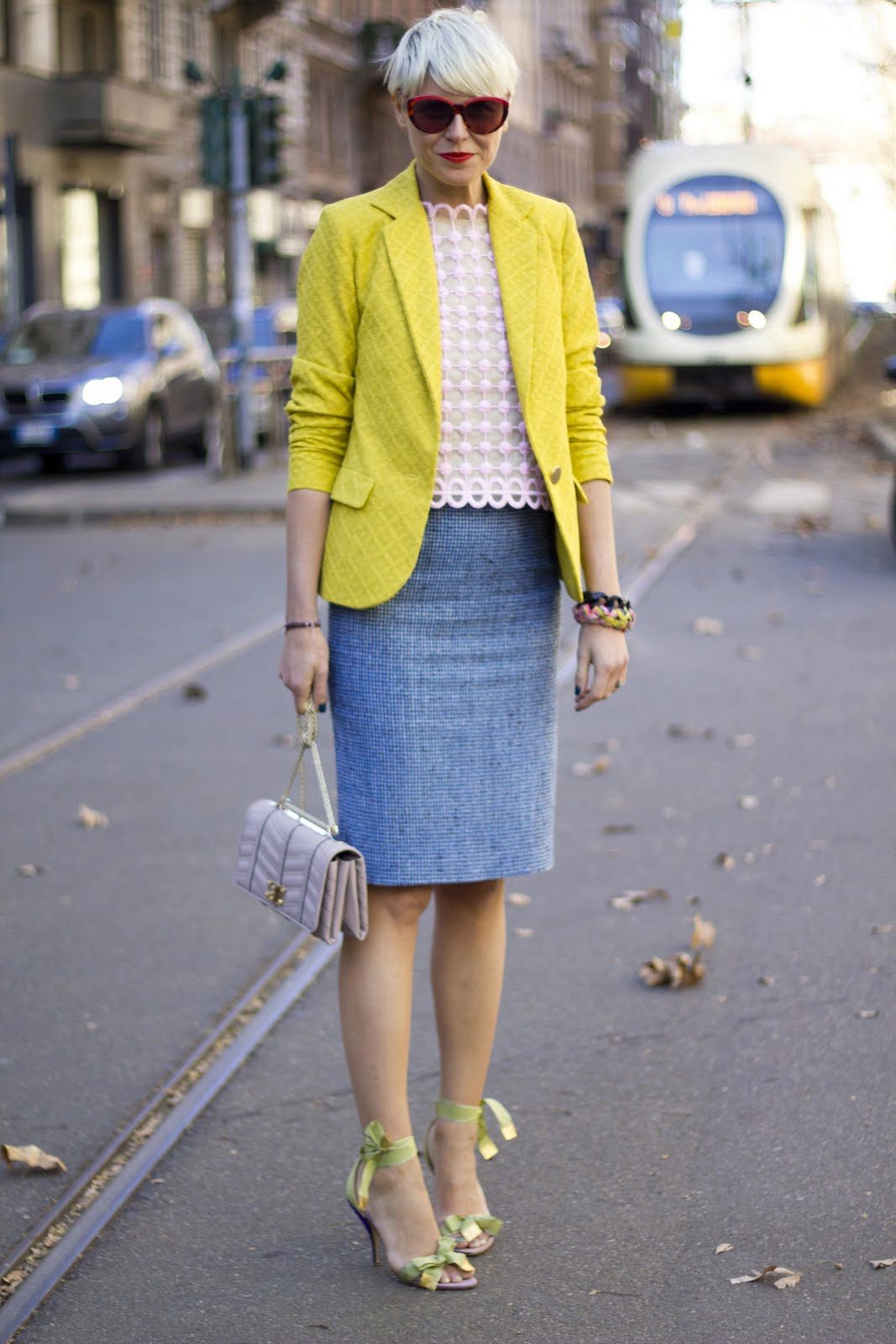 If you have an hourglass, rectangle and irregular triangle figure, then the basque jacket is just made for you. But with wide hips (a figure like Pear or Right Triangle), models with basques should be put aside, as it significantly visually expands the buttocks. If you have firmly decided to buy a yellow jacket for yourself, we advise you to look at the next model.